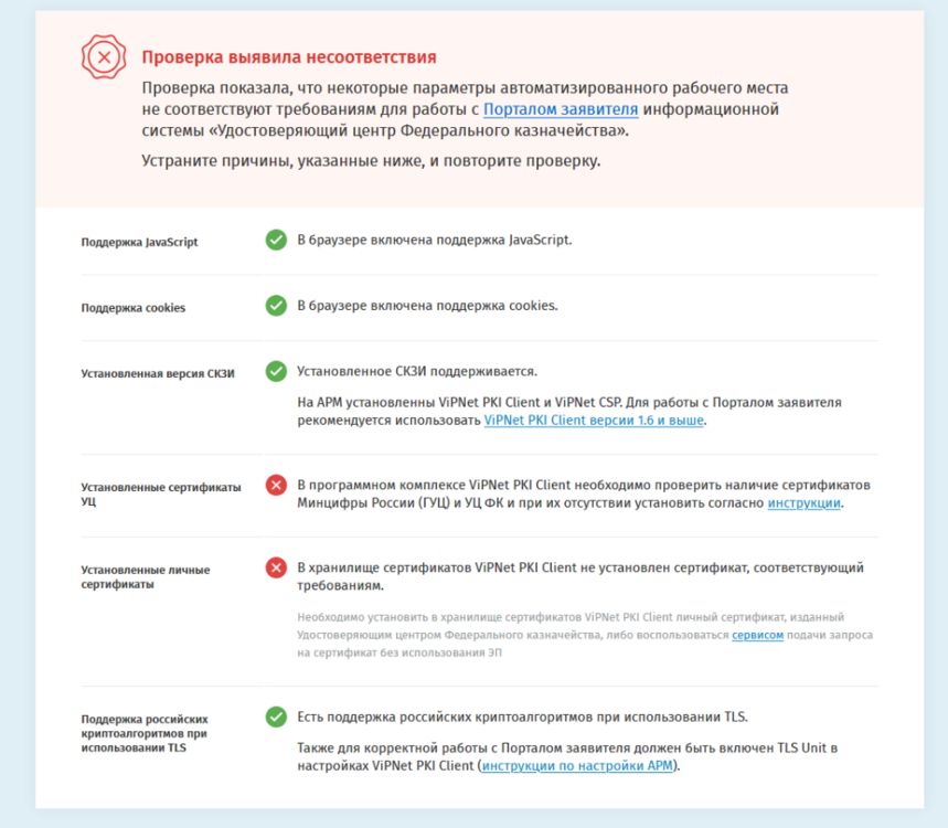Доброго времени суток! Сегодня хотел бы поделится опытом работы с Vipnet PKI Client и рассказать с чем пришлось столкнутся, что пришлось использовать в конечном итоге и какая последовательность действия была самой эффективной. Появилась задача на переход Vipnet от КриптоПро и поработать на портале заявителя, однако CryptoPro CSP в том числе использовался для другого функционала, соответственно начались танцы с бубном. И так что необходимо знать: 1) Vipnet PKI Client не будет работать должным образом с CryptoPro CSP вытекающее из этого: А - Синий экран при установки, либо деинсталляции ПО, Б - Не работают необходимые корневые сертификаты нарушение целостности ветки при установленных сертификатов, В - в браузере (yandexГОСТ,Chromium,firefox) не определяется криптопровайдер Vipnet CSP (TLS - ошибка российских криптоалгоритмов). Соответственно оставляем только Vipnet PKI Client. 2) Для должной установки работающего ПО использовать Vipnet PKI Client версии 1.7, обязательно подобрать определенную сборку ОС Windows, в моем случае интерес был к Windows 10 (10.0.19045), можно использовать: Версия 1803, сборка 17134; Версия 1809, сборка 17763; Версия 1909, сборка 18364; Версия 2004, сборка 19041; версия 20H2, сборка 19042. Если вы используете Windows 7 то вам подойдет любая версия 32/64 разрядная а также Vipnet PKI Client версии 1.6 3) Установка в правильной последовательности начиная от ОС, ПО, сертификатов корневых (.cer), промежуточных (.crt) + списки отзывов (.crl). 4) Обязательно используем браузер Firefox для доступа к fzs.roskazna.ru 5) Инструкция с roskazna.gov.ru не работает 6) Если установлено ПО Рутокен его необходимо удалить. Если вы используете ЭЦП от Рутокен можно пробовать поставить версию 4.16 (с этой версией проверка проходит успешно) Начнем Товарищи! 1. Установка Vipnet PKI здесь все по стандарту далее и далее нас будет интересовать только настройка в самой программе. 1)"Ползунок" в вкладке TLS + галочка "Разрешать соединения при неполном доверии к сертификату сервера" 2) Добавление сертификатов в вкладке "Сертификаты" 2. Скачиваем архив с корневым сертификатом с сайта: https://roskazna.gov.ru/ по переходу на сайт будет всплывающее окно с уведомлением: "В связи с заменой сертификата безопасности официального сайта Федерального казначейства в интернете при установлении защищенного соединения, необходимо установить корневой сертификат удостоверяющего центра, который размещен на официальном сайте Портала государственных услуг Российской Федерации." После скачивания не забываем его установить через Vipnet PKI Client в вкладке "Сертификаты". 3. После установки корневого сертификата переходим на сайт: http://crl.roskazna.ru/crl/ скачиваем и в таком же порядке устанавливаем через Vipnet PKI Client. 1) Корневой сертификат ГУЦ 2022.cer 2) Подчиненный сертификат УЦ ФК от 10.01.2022.crt 3) guc2022.crl 4) ucfk_2022.crl Обязательно, сначала устанавливаем сертификаты только после этого установка списков отзывов! 4. Очищаем кэш TLS Unit (в трее значок) правой кнопкой мыши -> очистить кэш сертификатов + очистить историю браузера. Перезагружаем машину. 4. После включения ОС и ПО проверяем нашу машину на сайте: http://arm-fzs.roskazna.gov.ru/ Главное что мы должны увидеть что СКЗИ Vipnet PKI Client виден и есть поддержка российских криптоалгоритмов при использовании TLS. 5. При успешном выполнении шагов выше, мы можем перейти на портал заявителя https://fzs.roskazna.ru/ (справа внизу также увидите что "Установлено защищенное соединение") соответственно подать документы на получение сертификата ли